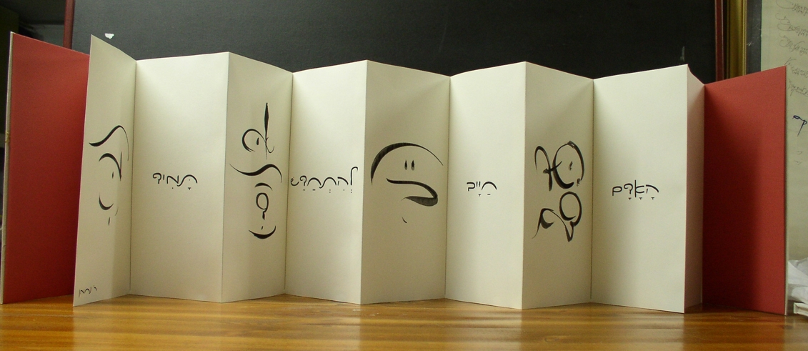 Accordion book. Text: Man must renew himself constantly. Rebbe Nachman.