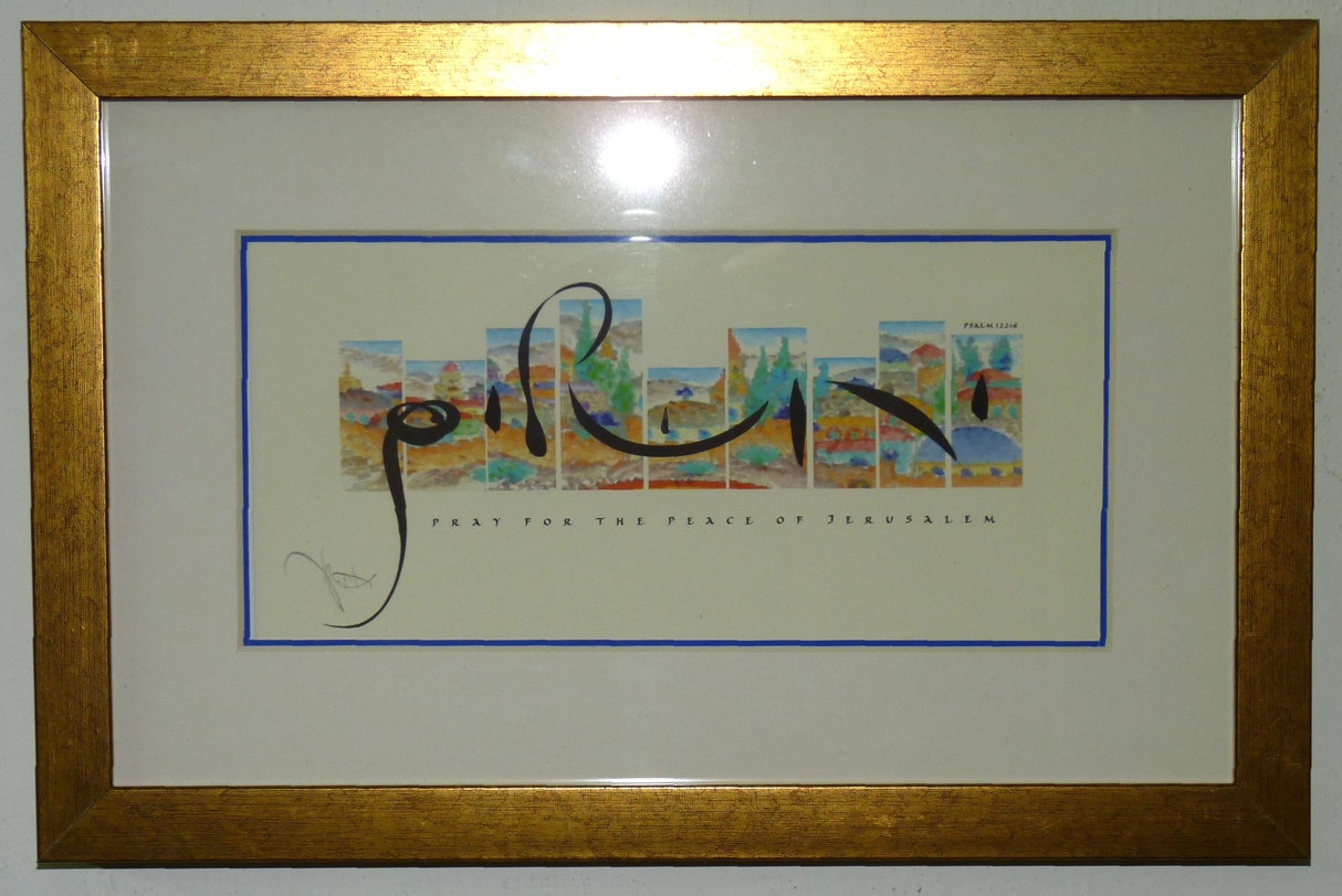 Pray for the Peace of Jerusalem, from Psalm 122. 21 x 10 cm. Larger sizes also available.