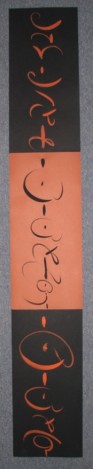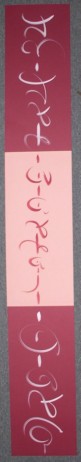 tall. The experiment here was to do the piece in two different color schemes - one "male" and the other female, intentionally invoking stereoptypical color associations. The purpose of this was to see whether the words are perceived differently when perceived as coming from a male source or female source. Of course these gender images of God are in themselves forms of idolatry worth ridding oneself of. |