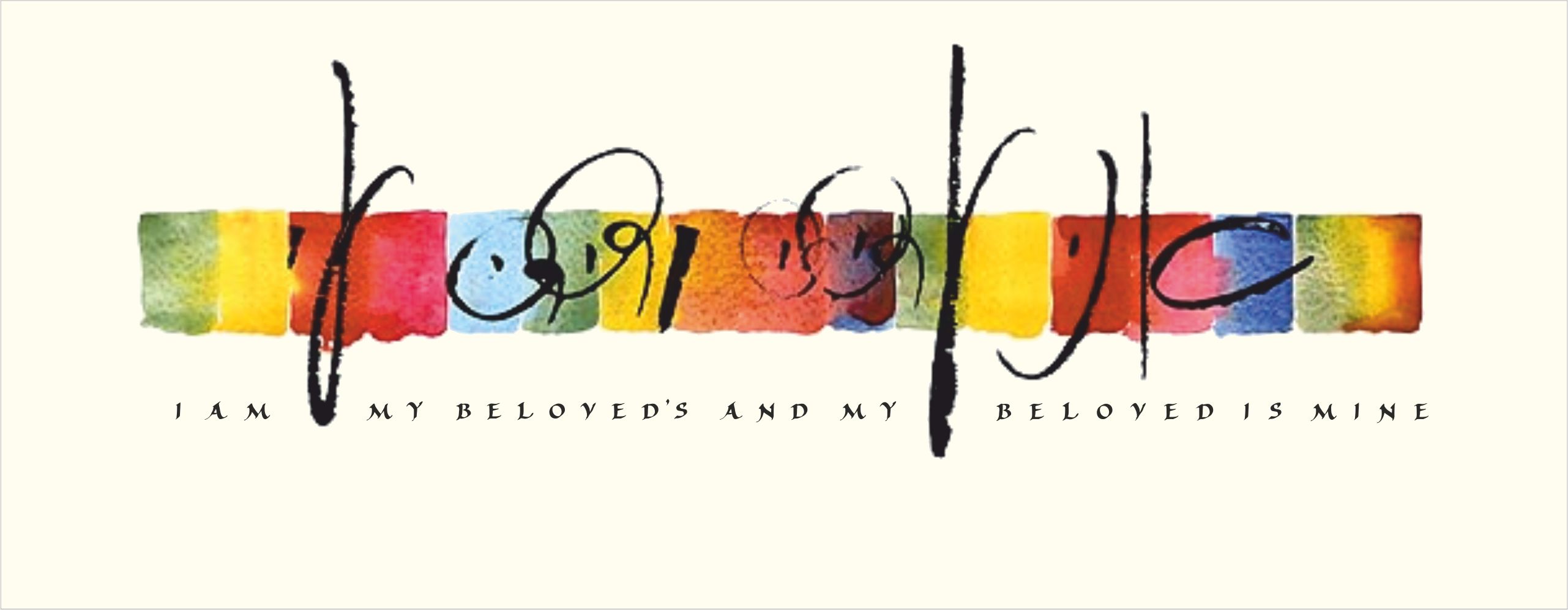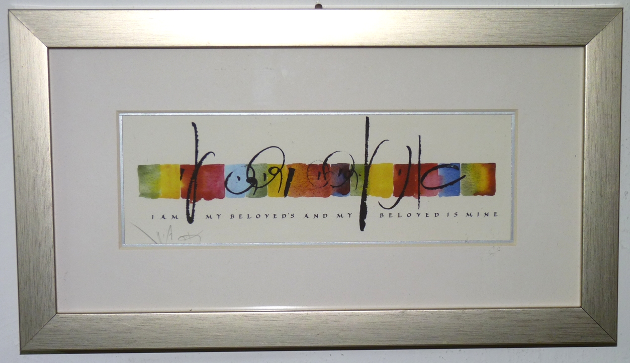 This print can be ordered with or without the English. The Hebrew (Ani L'dodi v'dodi li) is in an abstract Hebrew.