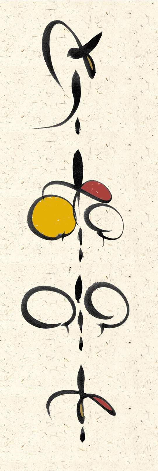 The Hebrew is in an abstract Hebrew brush calligraphy.