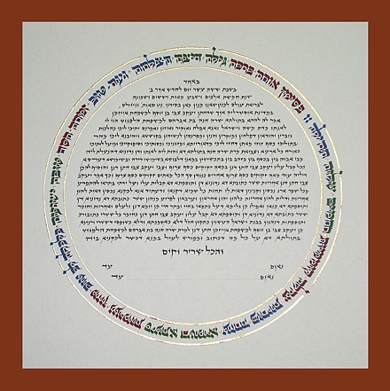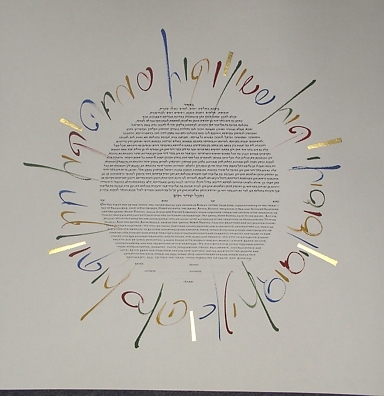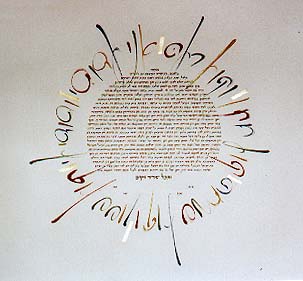 Welcome to my Ketubah Gallery page. The Ketubot you see on this page are all hand-done originals. These designs may be re-commissioned, or you may ask for custom changes. Toview these ketubot just hover the mouse over the images below or click on them. Note, these are just a sample of my works so please don't hesitate to contact me to discuss other ideas.