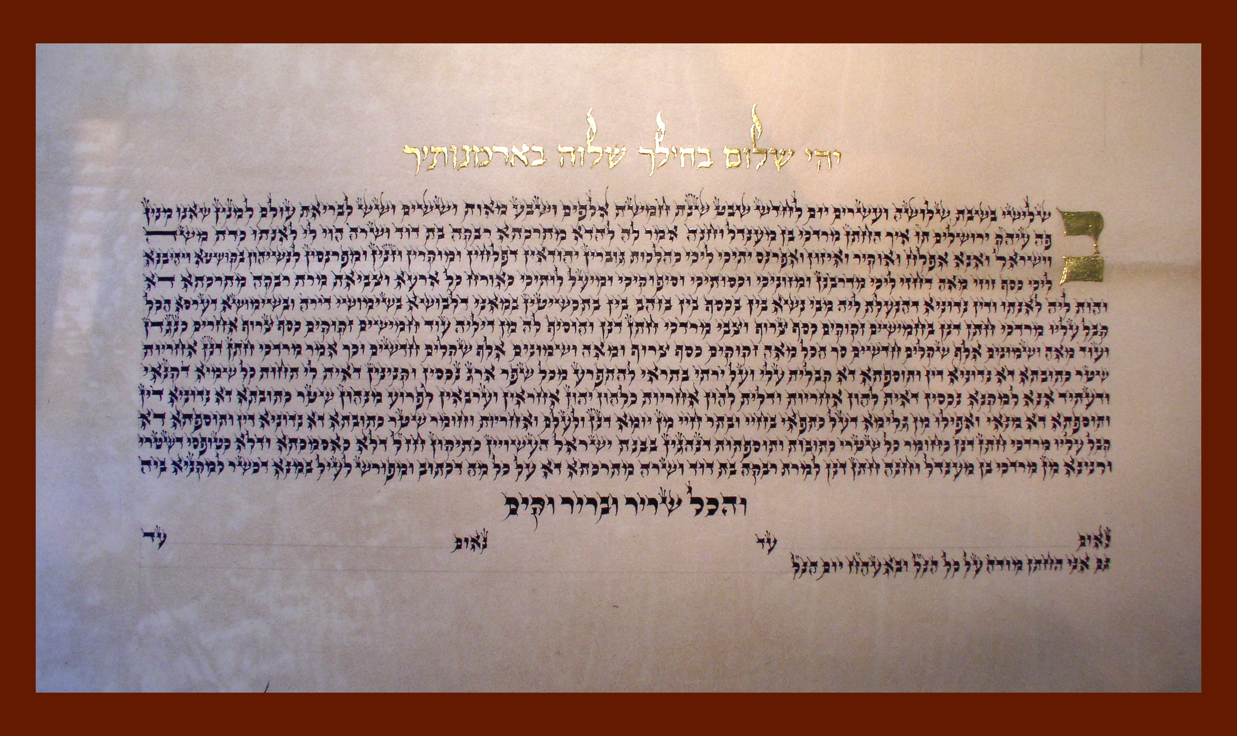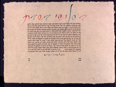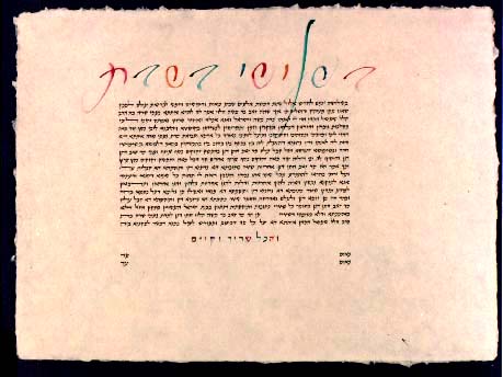 SIMPLE KETUBAH ON PARCHMENT, WITH GOLD