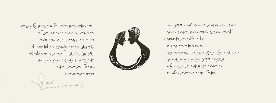 When I first saw the woodcut image "Togetherness" by the German Expressionist Ewald Matare', I knew I found the perfect complement to my Hebrew font Shir. The curviness, the simplicity, the humor.